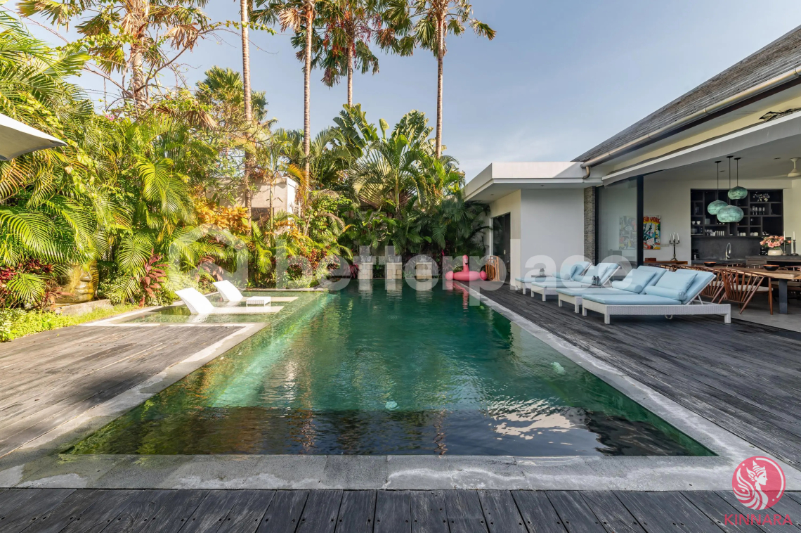 This fully furnished 3-bedroom villa is located in the center of Berawa, one of Bali’s most vibrant and sought-after coastal areas. It is within walking distance of the beach, popular cafes, and lifestyle spots like Finns Beach Club. The property is situated in a secure residential compound that offers a balance of privacy and convenience. Set on approximately 390 sqm of land with a building area of about 300 sqm, the villa features a sleek, modern design with tropical touches, making it ideal for both personal use and short-term rental. The open-plan living and dining areas flow effortlessly into the outdoor space, providing a comfortable layout that meets guest expectations in this market.