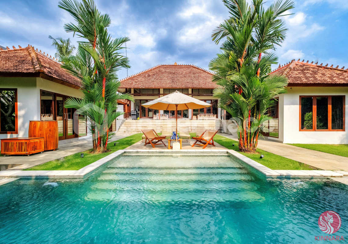 Situated in a tranquil area near Padonan, this 3-bedroom villa presents a unique blend of space, privacy, and long-term value. Set on a spacious 700 sqm plot, the property is enveloped by lush tropical foliage, offering a serene and private atmosphere while remaining conveniently close to Canggu’s expanding lifestyle centers. The villa boasts a large swimming pool as its focal point, accompanied by an extensive sun deck and several lounging spots, perfect for personal enjoyment or hosting guests. Located just 15 minutes from the beach, it offers a practical mix of accessibility and peace, making it ideal for both residential living and rental use. The layout is carefully designed to enhance comfort and flow throughout the home.