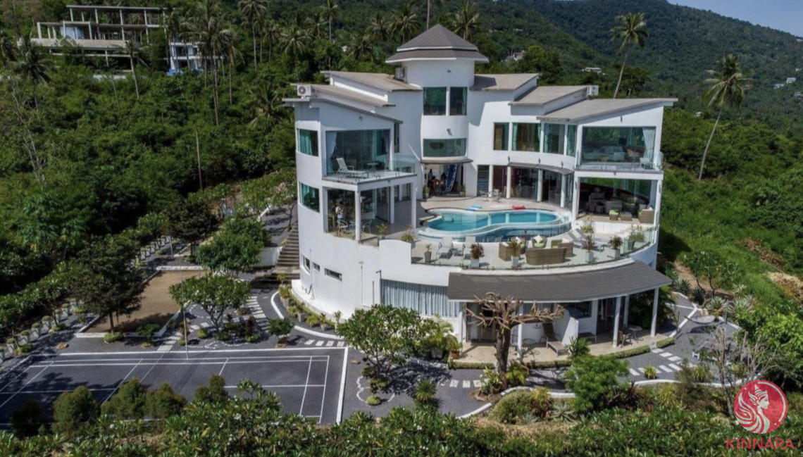 Discover this impressive 4-floor hillside luxury villa located in a peaceful and highly private area on the Angthong hillside in Bang Por, northwest Koh Samui.