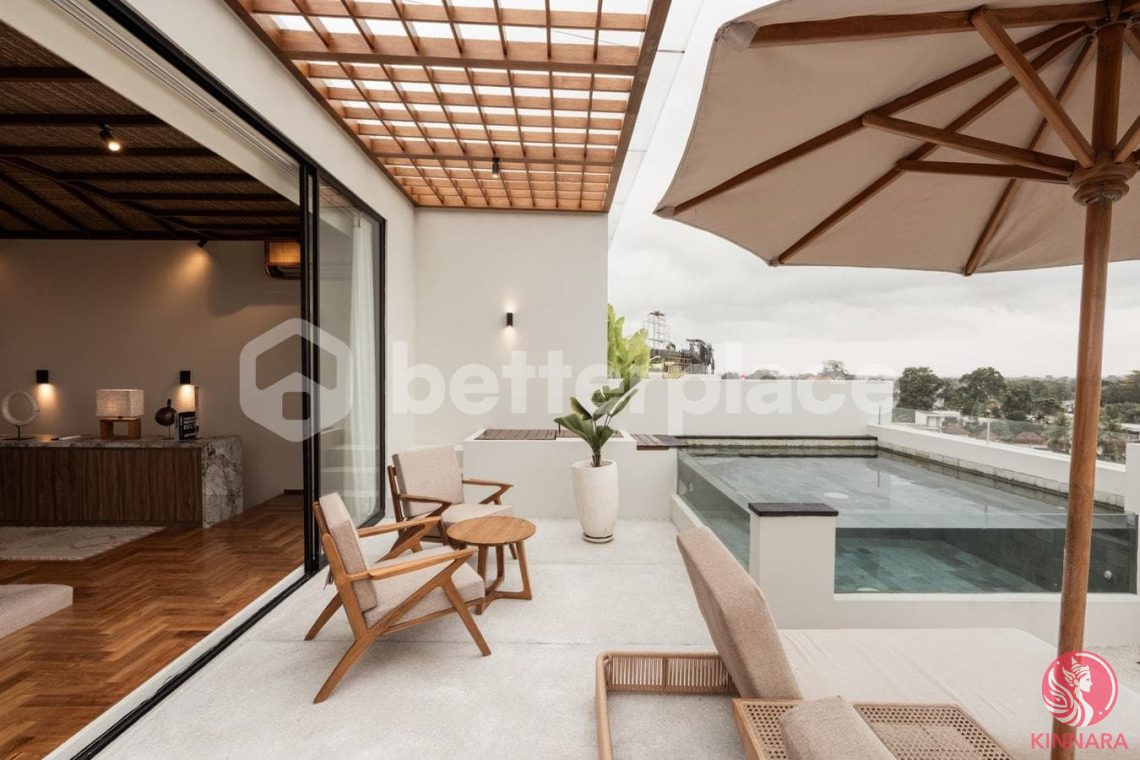 This property stands out not only for its design but also for its access to premium shared facilities. Residents benefit from a professionally managed reception area, ensuring smooth guest handling and added convenience for both owners and visitors. The shared swimming pool and common areas are well maintained, offering a resort-style environment that appeals strongly to short-term rental guests. These facilities enhance the overall value of the property, making it suitable for both personal use and investment purposes. The combination of private penthouse living with hotel-style services creates a balanced lifestyle that is increasingly in demand in Bali’s rental market.
