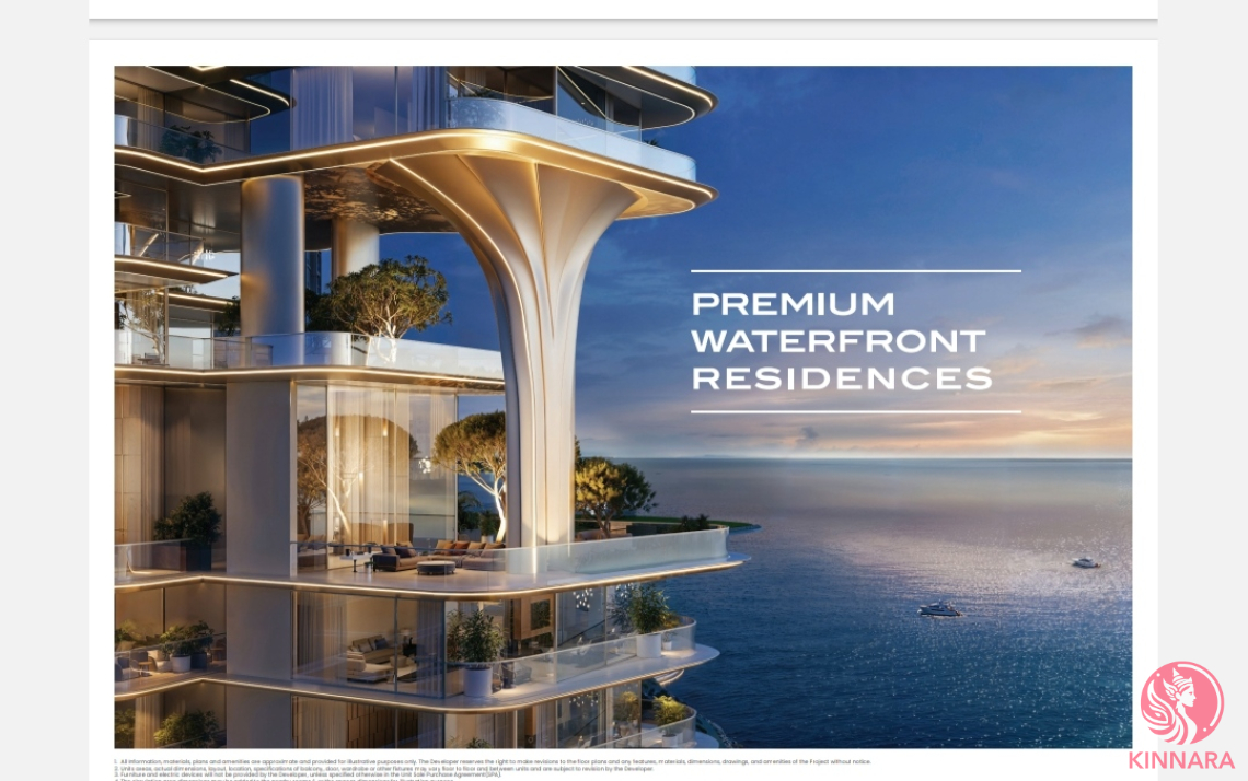 - *Wellness and Leisure*: Infinity Pools, Jacuzzi, Spa, Gym, Outdoor Gym, Zen Garden, Sunbed Relaxing Zone, Water Sunken Seating, Open Air Yoga, Sky Lounge, Cigar Lounge, Cinema
