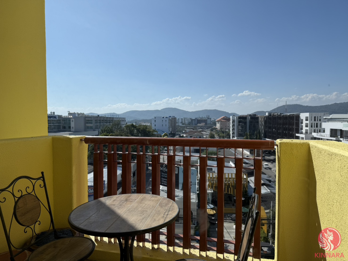 The open plan living leading out to a balcony with a lovely view of city and the best restaurant street (soi 94) in Hua Hin.