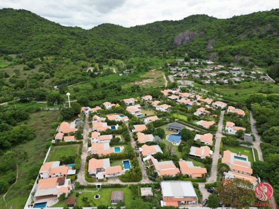 Discover this stunning 4-bedroom villa within the secure ’Villa Vista’ estate, nestled in a peaceful valley south of Hua Hin, between hills and beaches (5 minutes away).