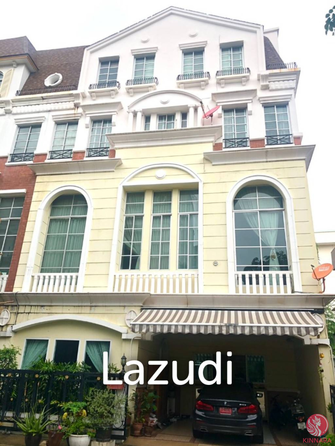This 400 sqm detached home in Chong Nonsi, Yan Nawa, Bangkok offers generous living spaces, classic styling, and freehold ownership. The residence presents a multi-storey profile with a timeless facade, large arched windows, floor-to-ceiling glazing, and balconies with metal railings. It is fully furnished and ready to move in, with four bedrooms and four bathrooms arranged for comfortable family living.