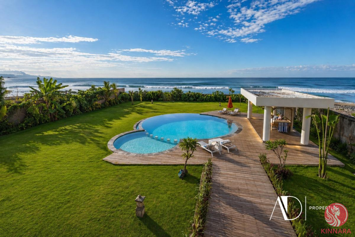 Outdoors, landscaped gardens frame a 10 x 10-meter swimming pool, with multiple dining and relaxation areas overlooking the greenery and beachfront, creating a calm and private environment. Built in 2013, this property offers a substantial landholding and direct beachfront positioning - a rare combination suited for a private residence or a large-scale family retreat.