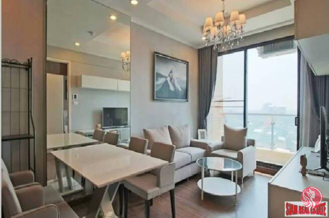 This modern 2-bedroom condo on the 14th floor offers a convenient location in the heart of Bangkok’s Sathorn business district.
