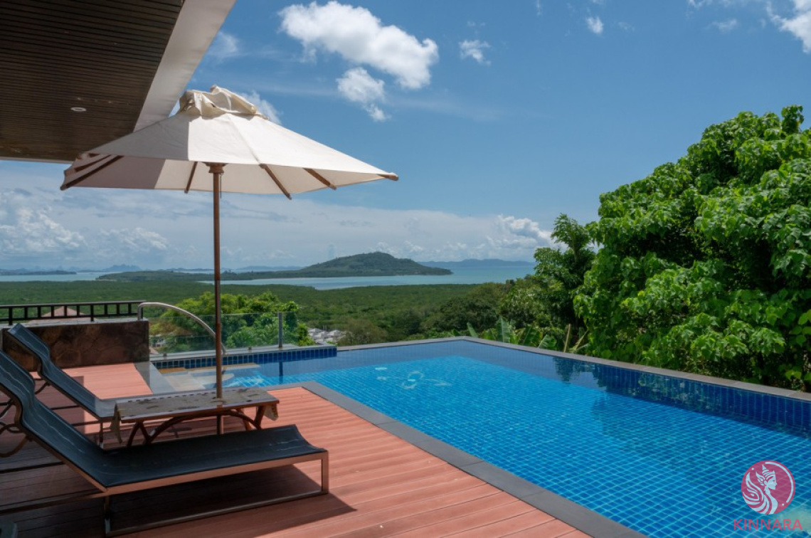 Perched on a hillside, the villa boasts breathtaking vistas of the nearby islands and rock formations of the Andaman Sea. The panorama extends to lush forests and plantations, creating a serene atmosphere that permeates the home. Oceanfront serenity graces the two VIP bedrooms, living room, dining room, kitchen, and pool deck, offering a constant connection to the beauty of nature.