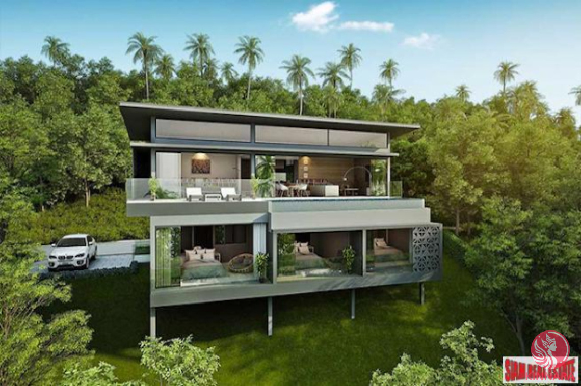 These new ultra-modern 3-bedroom Koh Samui villas are set in the prestigious Chaweng Noi hillside, with spectacular close-up sunrise sea-views across the beautiful Chaweng Noi bay and beyond. The project is poised on an exclusive hillside with nearby award-winning ultra-luxury villas built by the same developer this project offers reliable off-plan bespoke villa options.