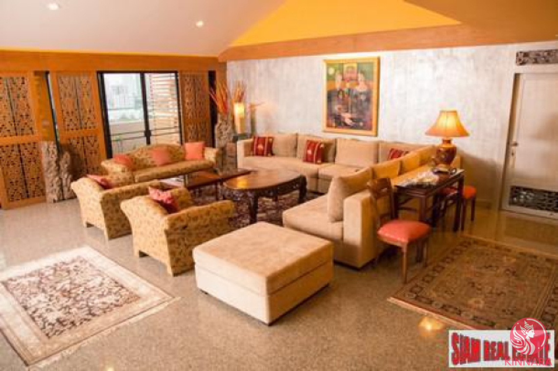 A fully furnished three bedrooms, four and a half bath condominium is being offered at the Baan Sukhumvit. It is generous in size at 474.38 sqm. It is located on the 15th top floor.