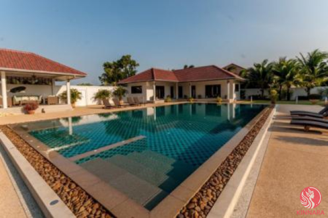 Very well designed and maintained 5 bed pool villa on large double plot. This superb villa features in the main house an open plan living, dining and quality Modern kitchen and 3 good sized bedrooms with 3 bathrooms and then there is a separate 2 bed guest villa with living area and kitchen. Both villas feature large covered terraces and there is a further dining and entertainment sala with BBQ next to the pool. The estate has lovely lawn and tropically planted areas. The estate also features a double carport, electric gates, large storage room and is sold fully furnished with very high quality furnishing and fixtures and fittings throughout.