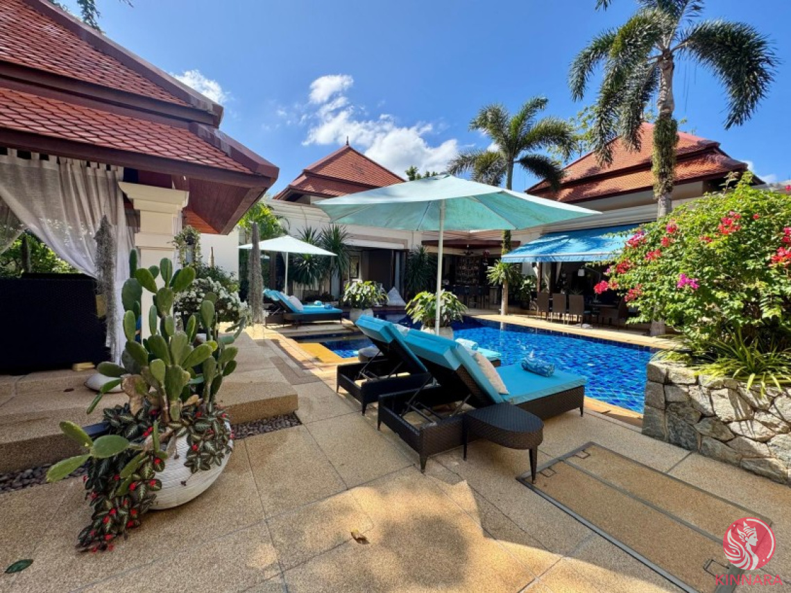 Combines luxurious living with functional design in a tranquil setting. Its thoughtful layout, high-quality finishes, and additional spaces cater to the needs of modern families while providing an ideal environment for relaxation and entertainment. With its proximity to local attractions like Bang Tao Beach and Laguna Phuketwith a built area of 350 sqm and a land area of 870 sqm, this villa is designed to provide ample space and comfort for families or those seeking a lavish holiday retreat.